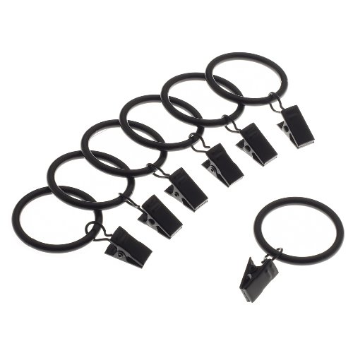 Levolor Classic Clip Rings, Set of 7, Black, Use With Rods Up To 1-Inch Diameter Feature